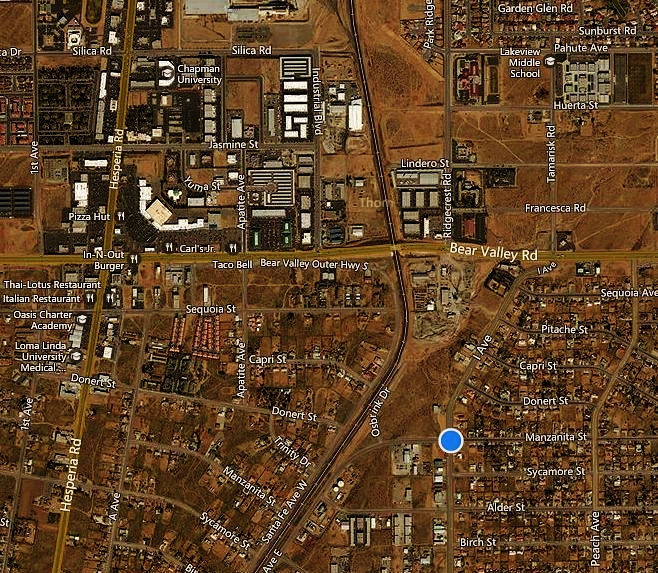 This is a very nice shaped, over 1/2 an acre parcel of land, in a great part of Hesperia, south of Bear Valley Rd., minutes away from the Victor Valley Mall/Town Center, the Victor Valley Community College, the Golf Courses, etc. Parcel has a great frontage on both I Ave and also Manzanita Street.